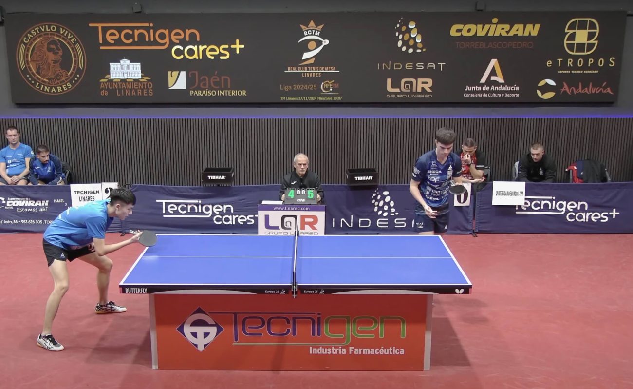 El encuentro comenzaba con el duelo entre el italiano Bobocica y nuestro asiático Yu Lun. El transalpino mostró ser un auténtico jugadorazo, de hecho, viene de representar a su país en los pasados JJOO. Logró vencer a nuestro jugador por un contundente 3-0. El segundo punto medía a Daniel Palacios y a Piotr Chodorski, que aun mostrando síntomas de debilidad, pudo deshacerse del jugador español del Leka Enea poniendo el 1-1 en el general. Los norteños también tenían un jugador polaco, Zandecki, que se medía en el tercer punto a Carlos Caballero. Era un duelo clave, y pese al gran nivel del jugador local, se veía que Carlos no estaba al 100%, especialmente en los puntos largos, donde se veía que el nuestro “no llegaba”. Con 2-1 abajo, se disputaba el cuarto punto. Bobocica ante Chodirski. El nuestro no podía ante el empuje del sensacional jugador italiano y cedía en tres sets. Yu Lun se medía en el quinto a Zandecki, y aunque el nuestro opuso resistencia, finalmente caía en cuatro setes, finalizando el encuentro con un claro 4-1 para los de Irún.