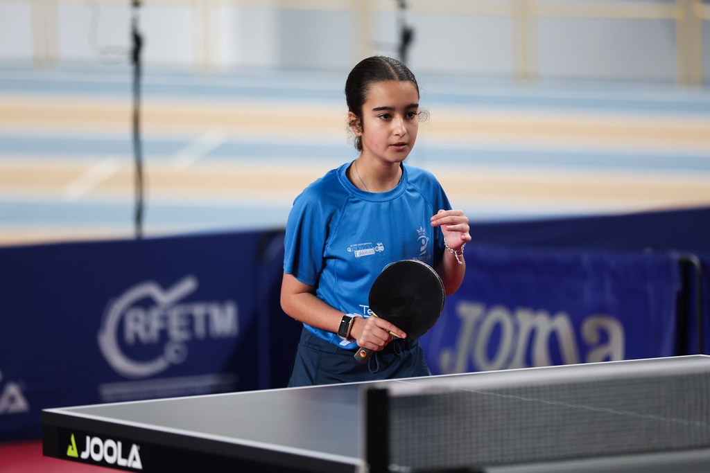 En categoría benjamín, la protagonista fue Mónica Carrasco. Una niña que en silencio va trabajando y creciendo día a día. Un ejemplo para todos los que empiezan o para los que empezarán en el futuro. Humildad y trabajo. Nuestra jovencísima jugadora estaba encuadrada en el grupo uno y allí logró clasificar en tercera posición. Mónica lograba imponerse a Sira Fernández (3-0) e Irina Blasco (3-2), cayendo ante Lia Sitjá (3-0) y Nerea Hidalgo (3-1). En la previa de los cruces, nuestra joven superaba a Beatriz Alonso (3-2), logrando de esta forma colarse en semifinales asegurando el tercer cajón del podio. Allí volvía a cruzarse ante Sitjá (3-0), que a la postre fue la vencedora de la categoría. Sin duda alguna, este tercer puesto es un extraordinario resultado para nuestra pequeña Mónica.